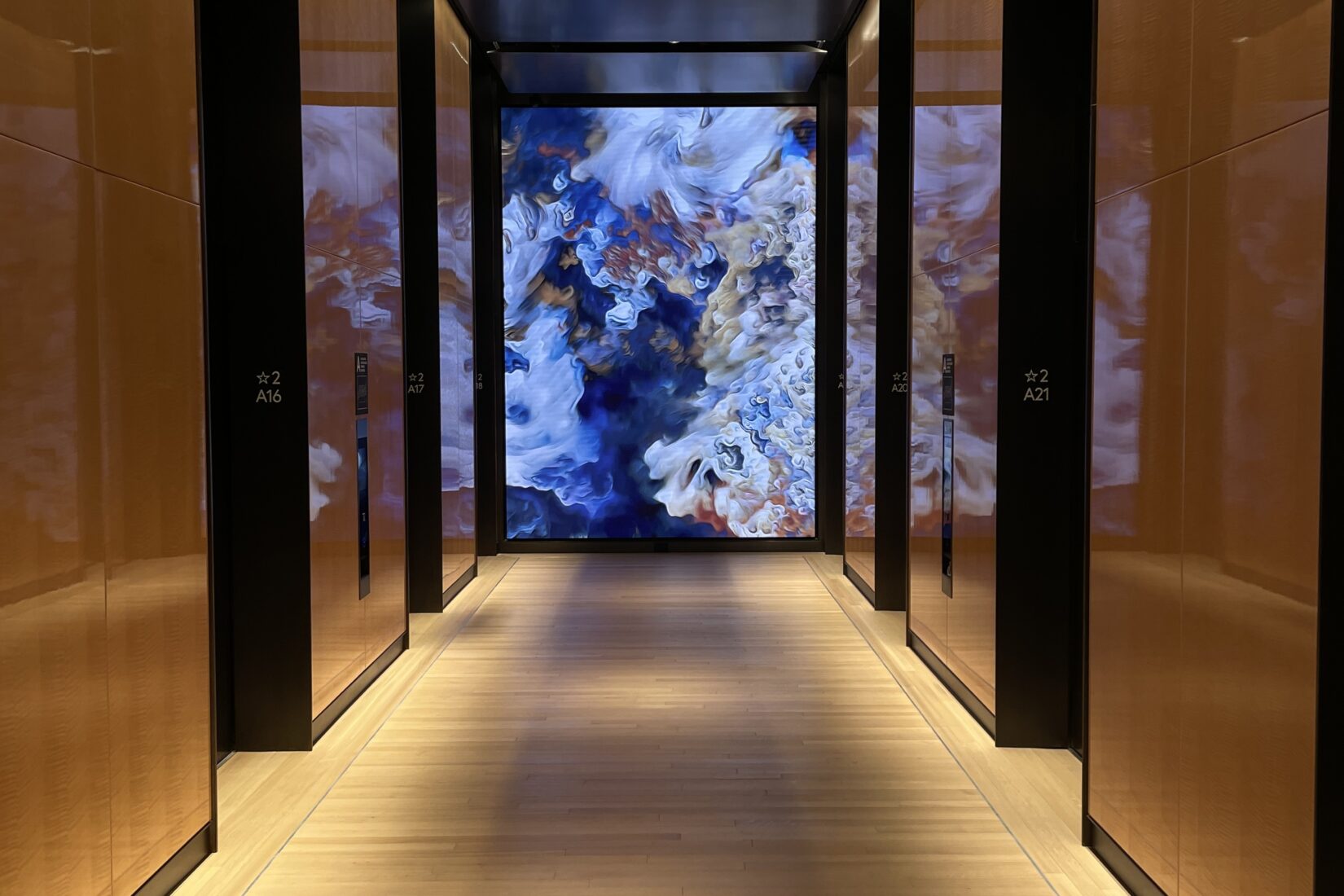 SM&W’s scope encompassed digital signage and media walls in public spaces, AV systems for conference and amenity areas, and structured cabling and telecom room layouts to support high-density, multi-tenant connectivity. The security design included integrated access control, video surveillance, turnstiles at the main lobby, and video intercom systems at loading docks and controlled entrances, tailored to the building’s high-traffic, transit-adjacent environment.