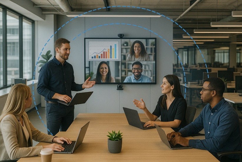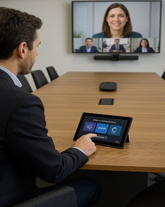 The performance of technology is heavily shaped by the space it occupies. Sound, light, finishes, and layout all determine how clearly people can be seen and heard and the level of user interface during meetings and calls.